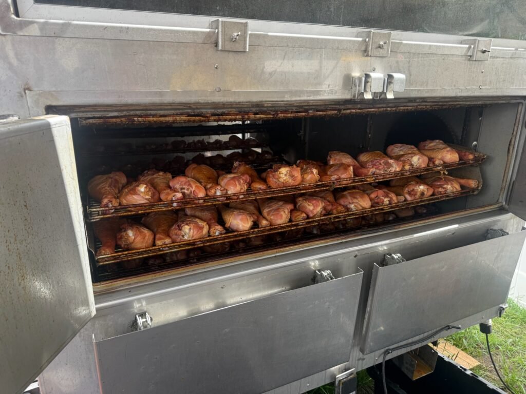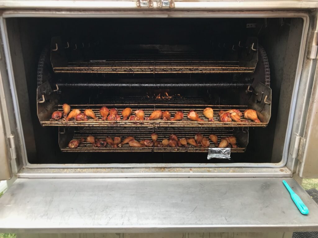 Chicken Legs & Ribs Being Cooked on a Model 250 Chicken & Rib Cooker