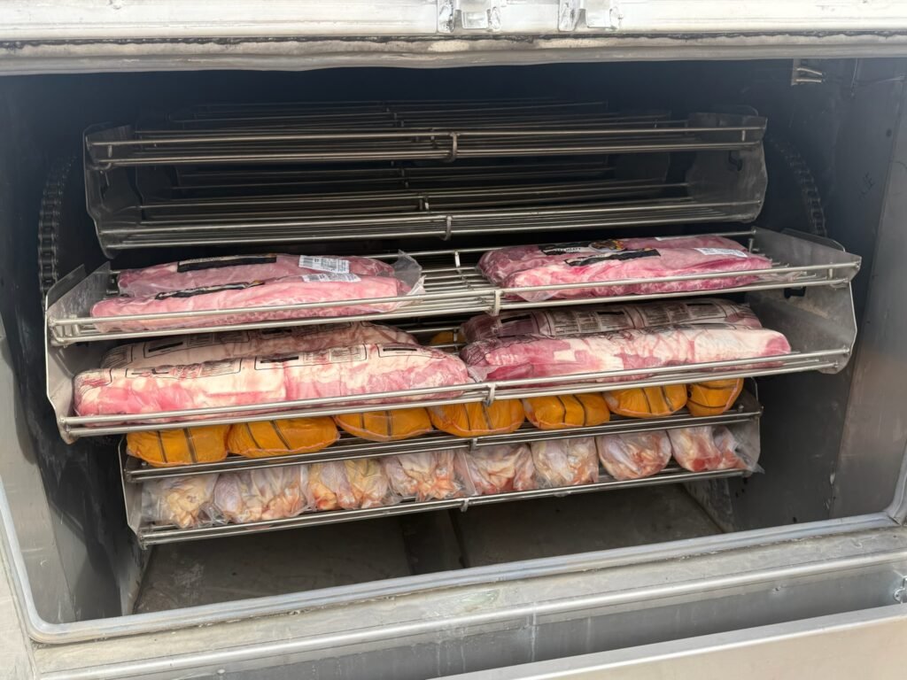 120 Pork Loins Being Cooked on a Model 600